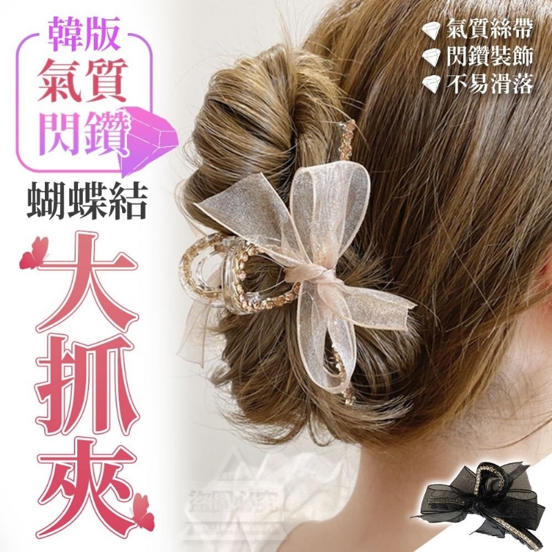 韓版氣質閃鑽蝴蝶結大抓夾(2入/組)【新品預購】(可超取)