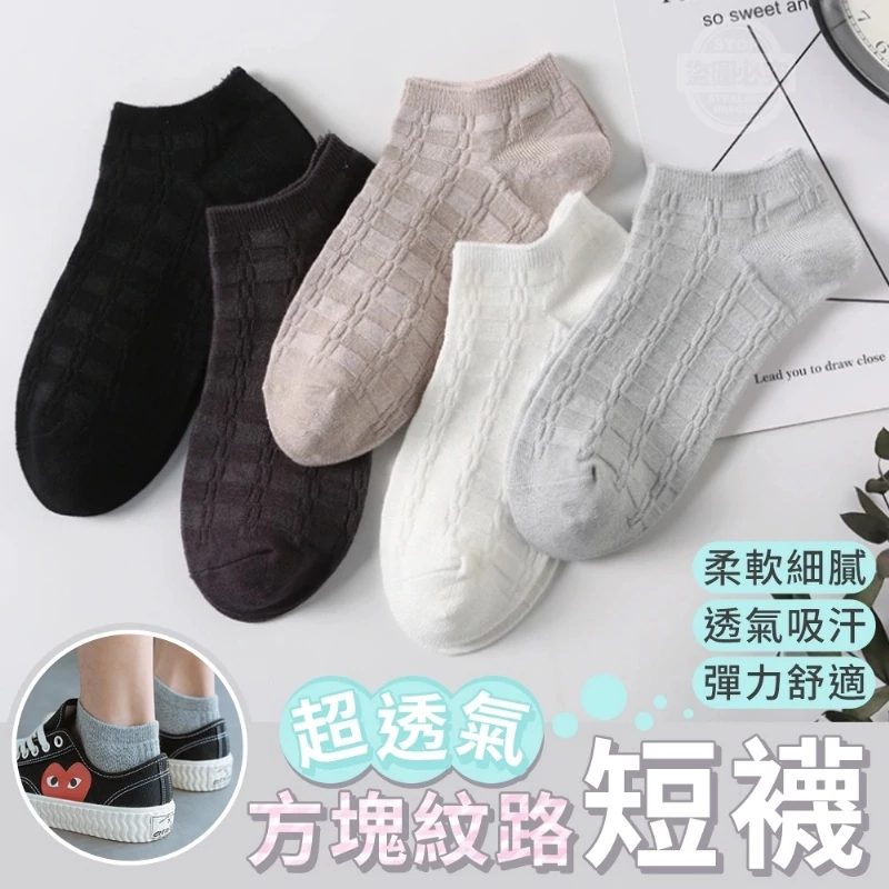 超透氣方塊紋路短襪(10雙/組)【新品預購】(可超取)