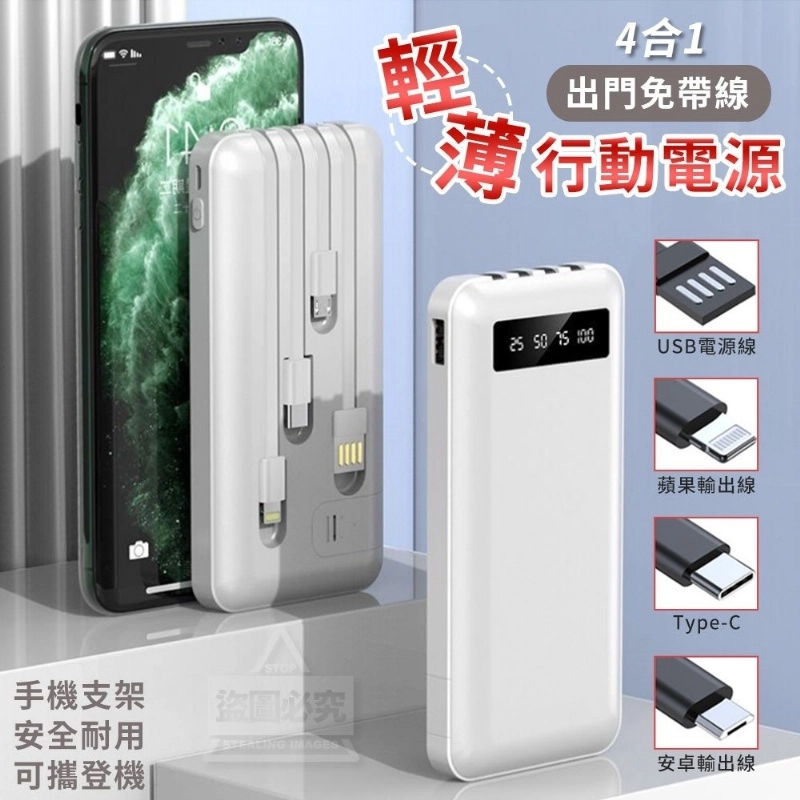 4合1出門免帶線輕薄行動電源【新品預購】(可超取)