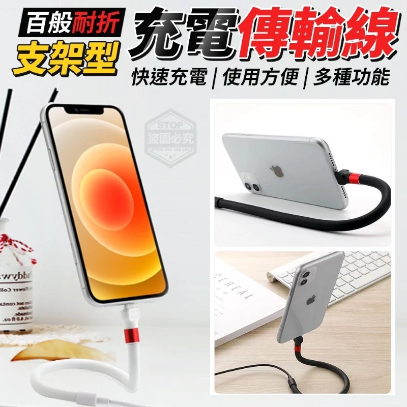 百般耐折支架型充電傳輸線(2入/組)【新品預購】(可超取)