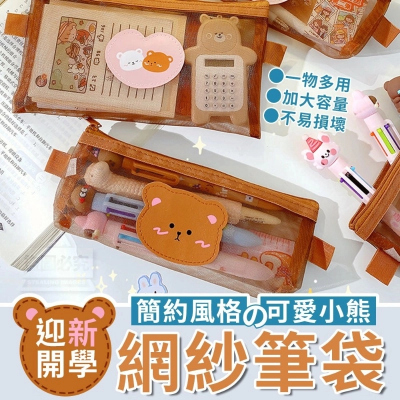 可愛小熊迎開學網紗筆袋(大+小/組*2)【新品預購】(可超取)