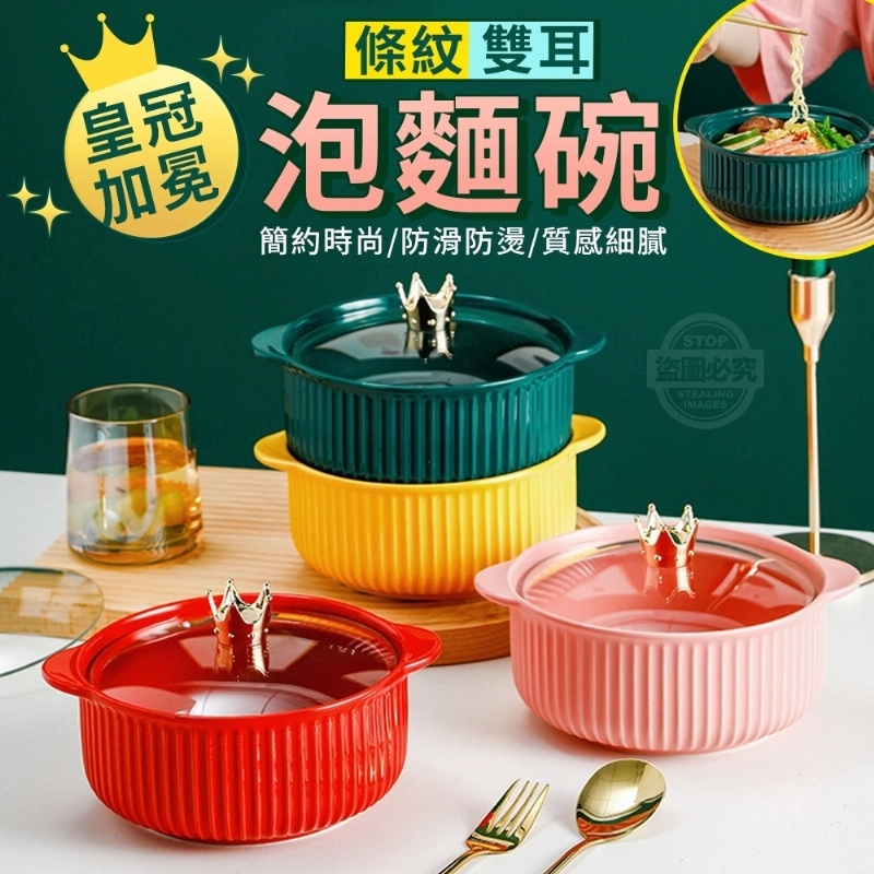 皇冠加冕條紋雙耳泡麵碗【新品預購】(可超取)