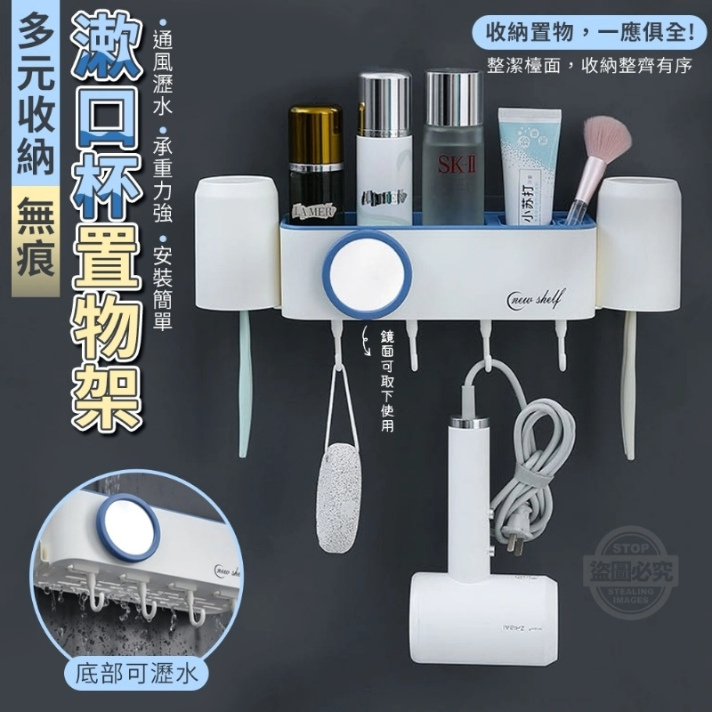 多元收納無痕漱口杯置物架【新品預購】(可超取)