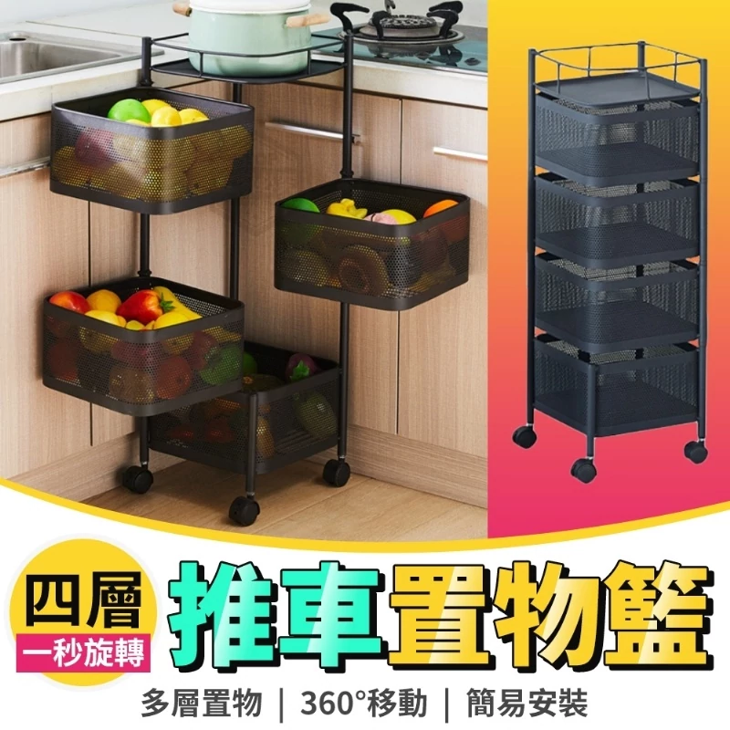 一秒旋轉四層推車置物籃【新品預購】(限宅配)