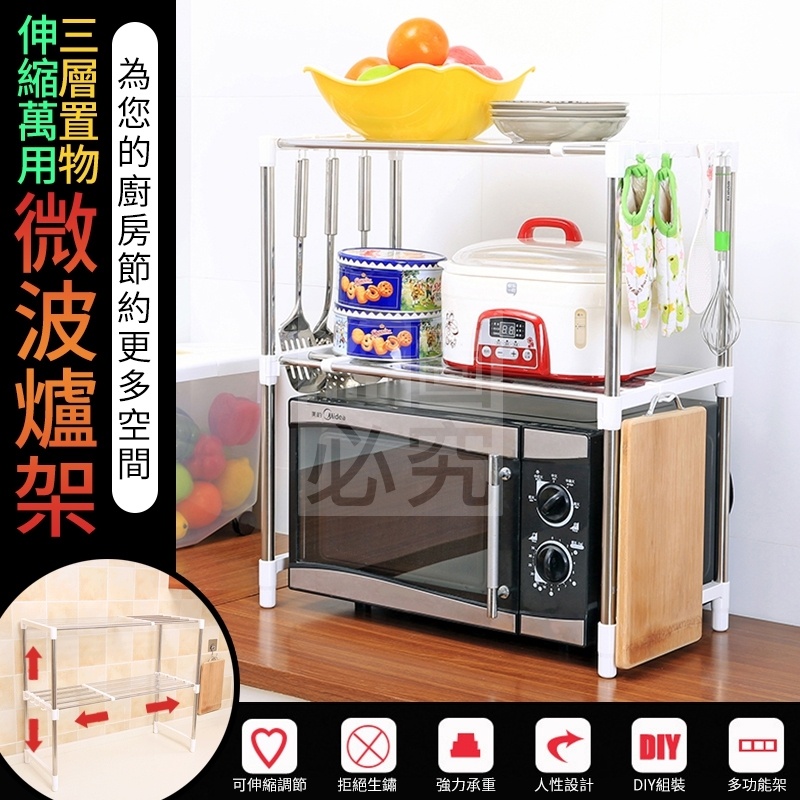 伸縮萬用三層置物微波爐架【大倉現貨】(限宅配)