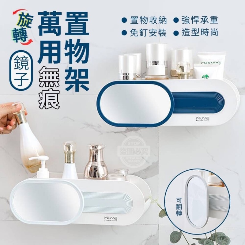 無痕旋轉鏡子萬用置物架【大倉現貨】(可超取)