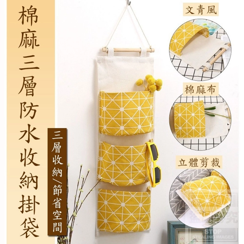 棉麻三層防水收納掛袋(2入/組)【新品預購】(可超取)